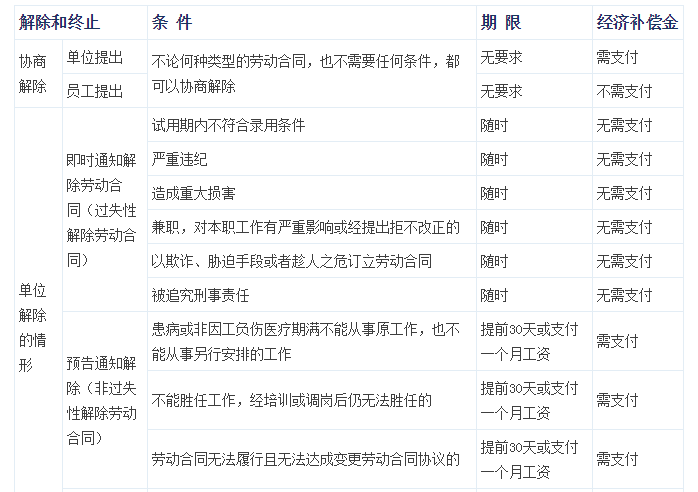 最全的劳动合同解除及赔偿一览表